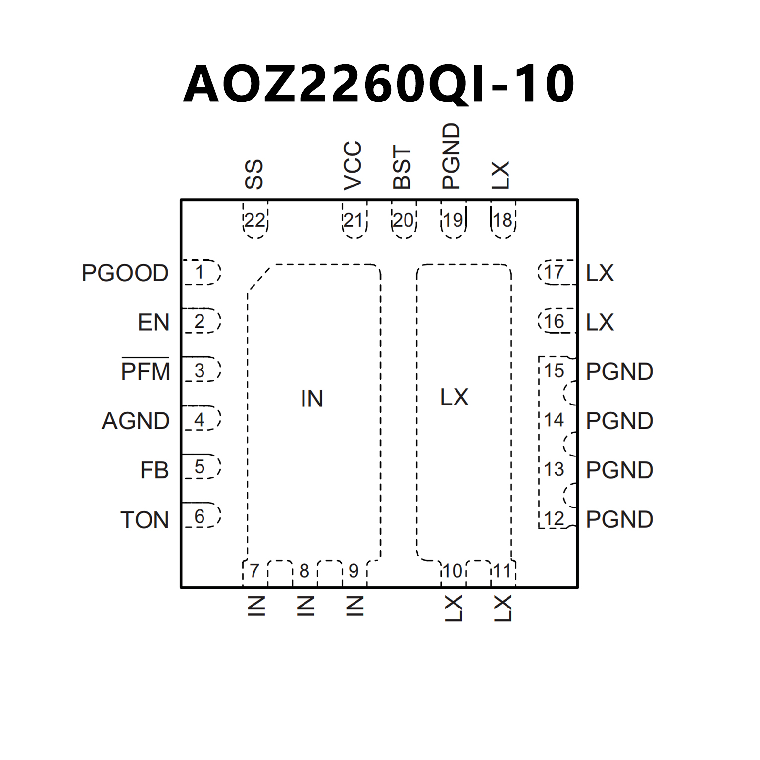 • Thermally enhanced 4mm x 4mm QFN-22L package