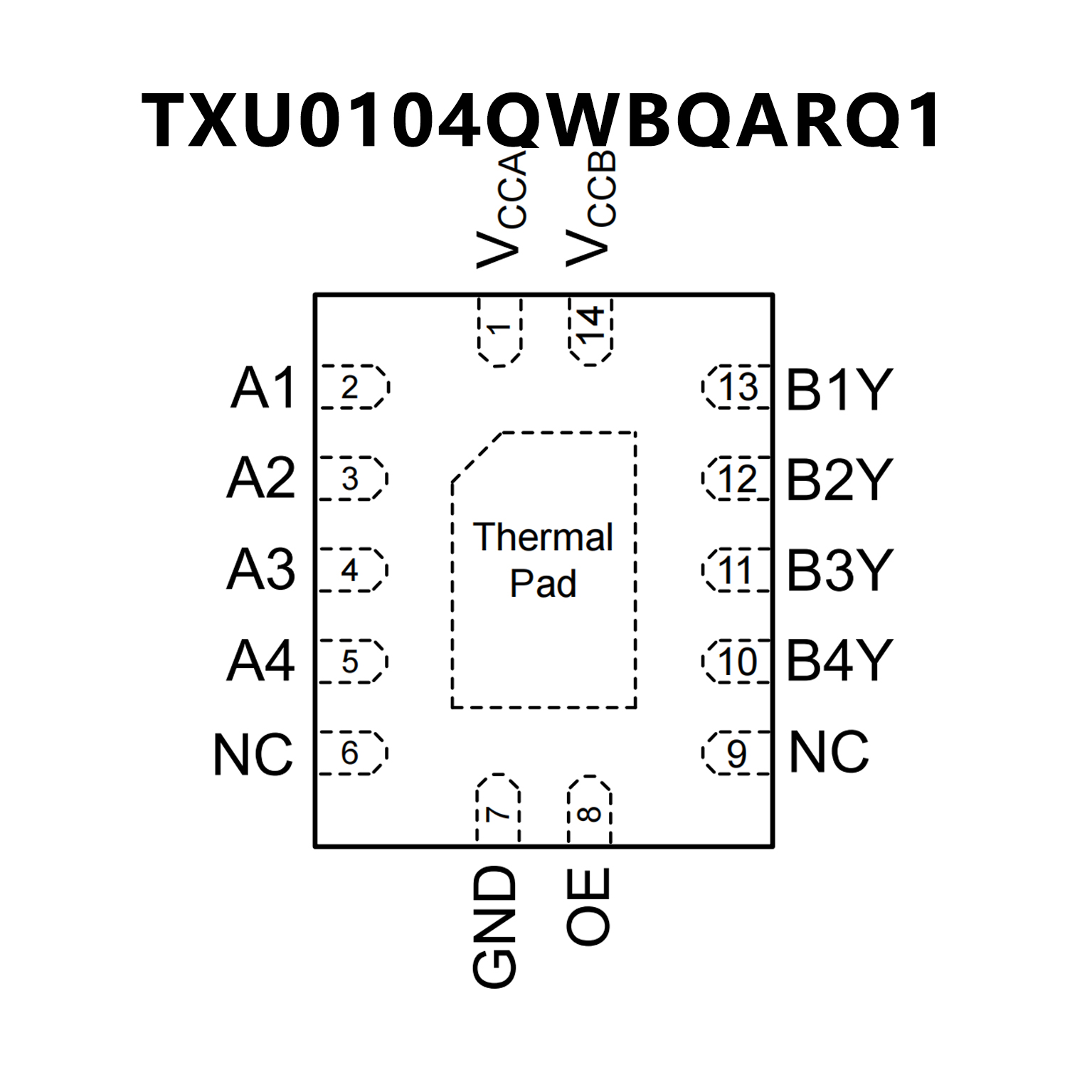 Automotive 4-Bit Fixed Direction Voltage-Level Translator with Schmitt-Trigger Inputs and 3-State Outputs, P2P TXU0104QWBQARQ1.